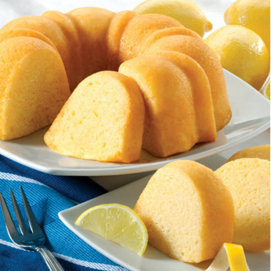 "Sunny lemon is the key to this delicate, yet fabulously rich cake. Brightened with 100% real lemon juice, moistened with lemon pudding and finished with a sugary lemon glaze, our Key Largo Lemon Cake is as luscious as a tropical sunset."